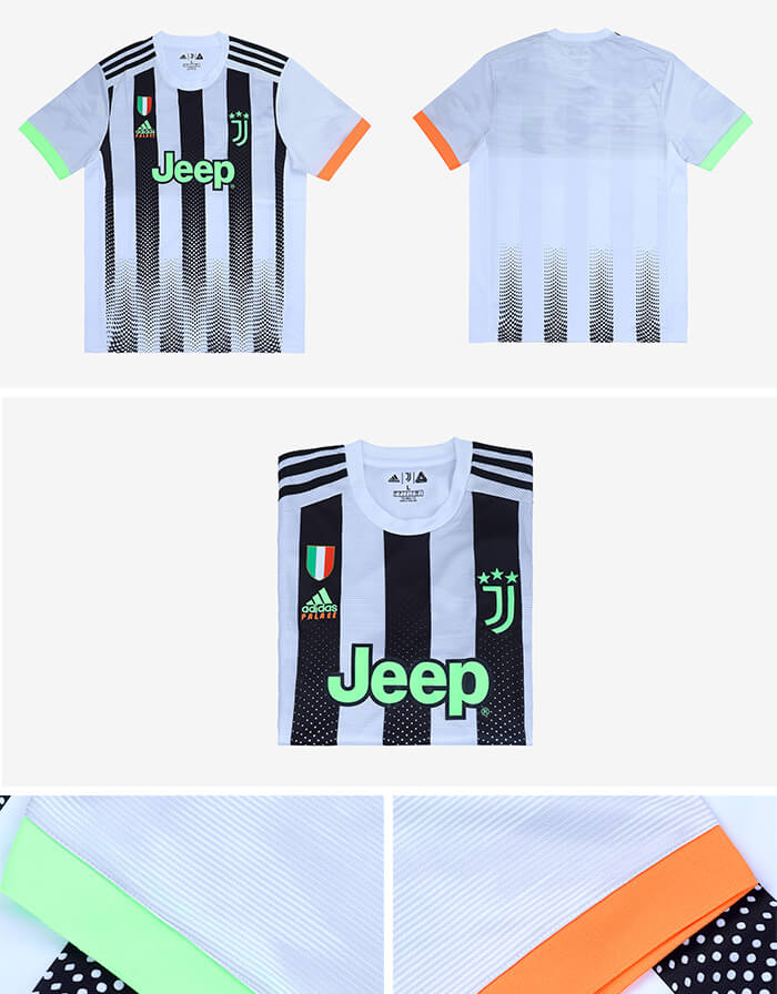 The shirt sees Juventus in their iconic black and white vertical stripes for the first time this season.
