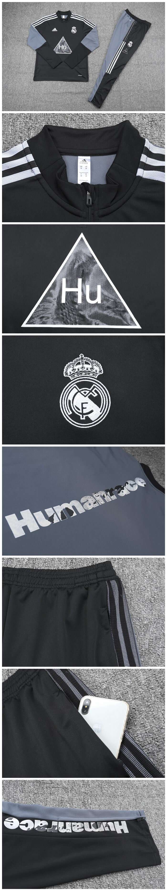 Real Madrid Human Race Black Zipper Sweat Shirt Kit(Top+Trouser)