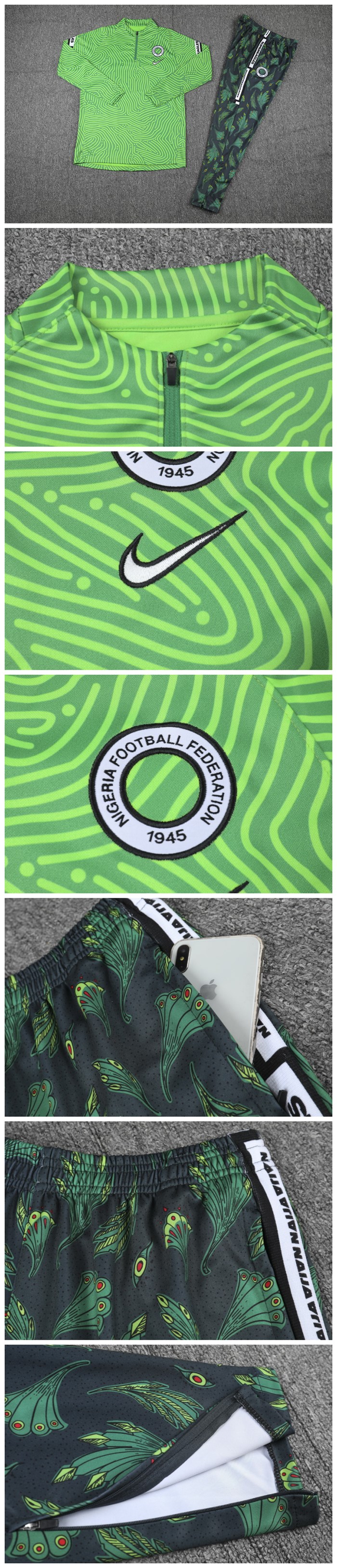 2021 Nigeria Light Green Zipper Sweat Shirt Kit(Top+Trouser)